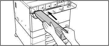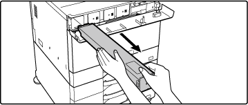Den tomme tonerpatron skubbes fremad for at gøre det muligt at fjerne den.