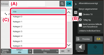 A. Tryk for at vælge et element. Den valgte tast vises