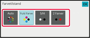 Vælg farvetilstanden blandt Auto, Fuld farve, Sort/hvid,