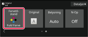 Maskinen registrerer automatisk, om den enkelte original er i farve eller sort & hvid, og skifter til tilsvarende tilstand (fuld farvet for en farvet original eller sort & hvid for en sort & hvid original). |
