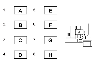Når du trykker på tasten originalstørrelse, angives originalens retning i "Sådan indstilles". Placer originalen, så den vender som vist.Tryk på tasten [Papirvalg] og vælg en papirstørrelse.