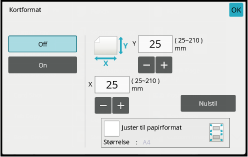 Tryk på tasten [On] og angiv den ønskede originalstørrelse.
