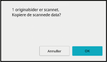 Det antal, der vises, er antallet af scannede originalark, ikke antallet af scannede originalsider. Ved 2-sidet kopiering med brug af én original vises tallet "1" for eksempel for at angive, at der er scannet ét originalark, ikke "2" for at angive forside og bagside.