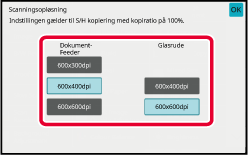 Opløsningen kan indstilles til både dokumentfeeder og glasplade. Når indstillingerne er angivet, skal du trykke på tasterne [OK] og [Tilbage] efter hinanden.