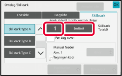 Det samlede antal skilleark vises ved siden af tasten [Indtast]. Gentag disse trin for alle skillearkene.