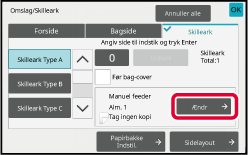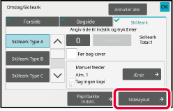 Tryk på tasten [Skilleark Type A], og tryk på tasten for skærmen tilføj side.