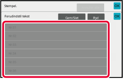 Trykker du på tasten [Forudindstil tekst], kan du vælge det nødvendige