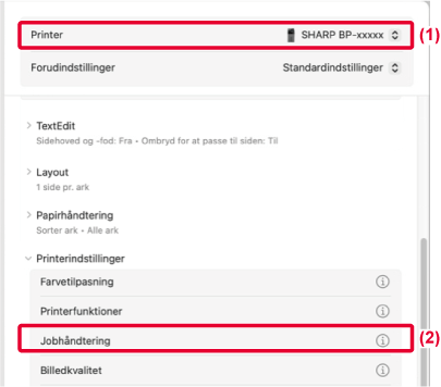- Vælg [Jobhåndtering] fra "Printerindstillinger".