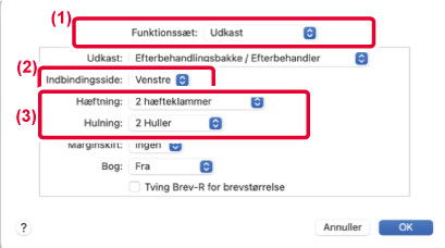 Hæftepositionerne og antal hæfteklammer kan vælges for at