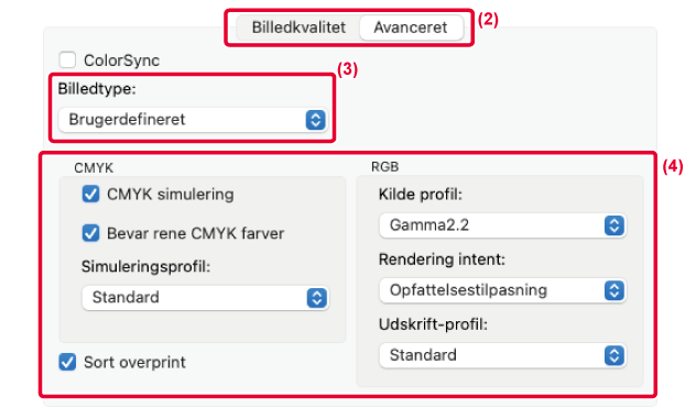 farvestyring, skal du vælge afkrydsningsboksen [ColorSync], så markeringen