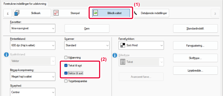 Vælg, om du ønsker at udskrive sort dataområde med kun sorte farvetoner. |