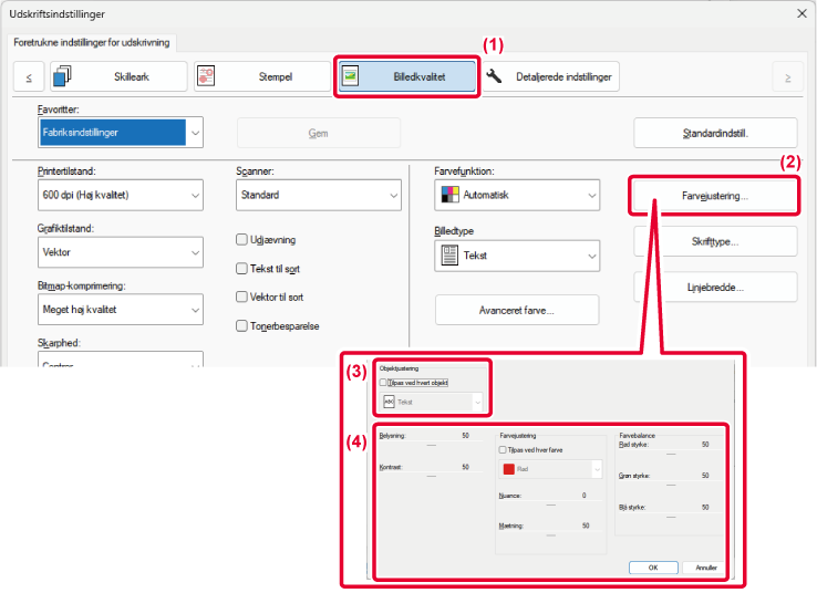 gør det muligt at udskrive ved brug af de mest velegnede farveindstillinger