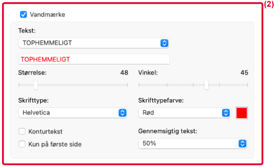 vandmærkeindstillinger som f.eks. valg af en tekst.