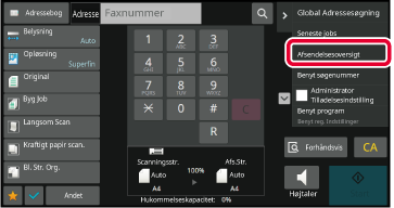 På basisskærmen eller adressebogsskærmen skal du trykke på [Afsendelsesoversigt] i handlingspanelet.