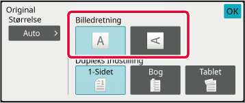 Tryk på tasten [Billedretning] med den samme retning som den placerede original.