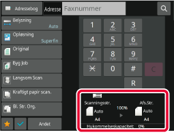 Størrelsen på den ilagte original vises som "Scanningsstr." og