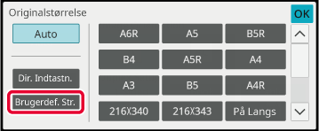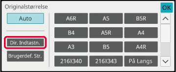 Tryk på tasten [Dir. Indtastn.], og indtast scanningsstørrelsen.