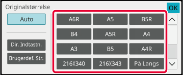 original) A4 (8-1/2" x 11"), og afsendelsesstørrelsen er automatisk.