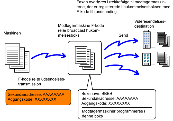 Din maskine rundsender herefter faxen til hver af destinationsmaskinerne,
