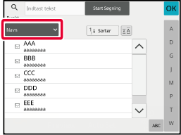 Når du bruger adressebogen i nem scanning eller e-mailfunktionen,