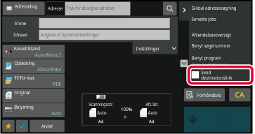Når [Aktiver Send destinationslink som standard] er aktiveret i indstillinger (administrator),