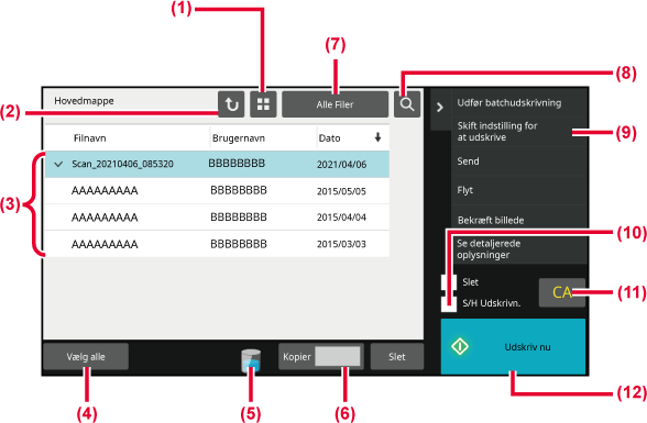 - Vælg eller slet alle filer. Ved at trykke på denne tast skiftes