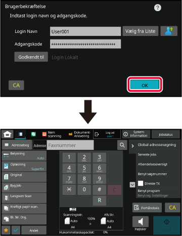 Kontakt maskinens administrator for at få at vide, hvilket loginnavn/adgangskode