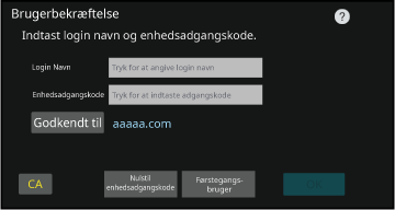 Brugergodkendelse på maskinen ved brug af hurtig brugergodkendelse