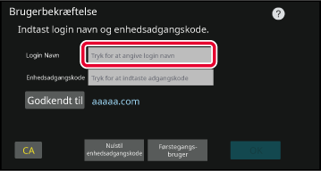 trykke på tekstboksen [Login Navn] og indtaste loginnavnet med softwaretastaturet.
