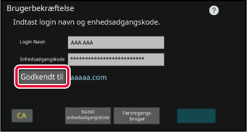 Tryk på tasten [Godkend til], og indstil godkendelsesdestinationen.