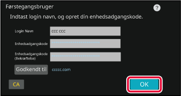 Tryk på tasten "Førstegangsbruger" på den viste skærm