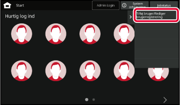 Tryk på [Tilføj bruger/Rediger brugerregistrering] på handlingspanelet, og tryk derefter