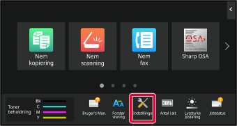 Tryk på tasten [Indstillinger] på hjemmeskærmen.