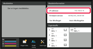 Fra maskinens indstillingsfunktion kan du udskrive maskinens IP-adresse og indtaste adressen i pc'ens webbrowser.