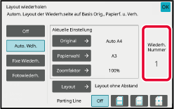 AUSWAHL DER AUSRICHTUNG UND DES FORMATS DES ORIGINALSBerühren Sie [Anz. bedruckb.S.], um eine Wiederholungszahl einzustellen.