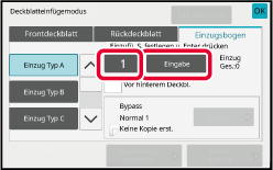Die Gesamtzahl der Einzugsbögen wird neben der Taste [Eingabe] angezeigt. Wiederholen Sie diese Schritte für die Anzahl der Einzugsbögen.
