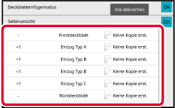 Berühren Sie die Taste [Sonstiges] und anschließend die Taste [Deckblatteinfügemodus].