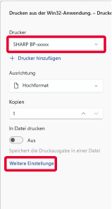 Wählen Sie den Druckertreiber für das Gerät aus, und klicken Sie auf [Weitere Einstellungen].