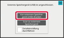 Wenn der Bildschirm für die Auswahl der Aktion angezeigt wird, berühren Sie [Von externem Speicher gerät (USB) drucken].