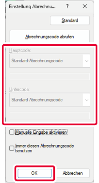Wenn der Druckvorgang beginnt, wird der Bildschirm "Abrechnungscodeeinstellung"