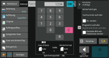 Berühren Sie die Taste [Direkteingabe] oder [Faxnummer], um die Ziel-Faxnummer einzugeben.