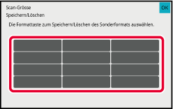 für das gespeicherte Format im Scangrößen-Bildschirm ordnungsgemäß