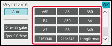 Berühren Sie eine Taste des gewünschten Originalformats.