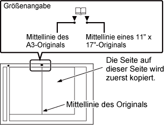 Nach Abschluss des Scanvorgangs legen Sie das nächste Original ein und berühren die [Start]-Taste.Die geöffneten Seiten einer Broschüre mit