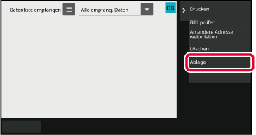 Berühren Sie die Taste für die empfangenen Daten, die Sie speichern möchten, und dann im Aktionsfeld die Taste [Ablage].