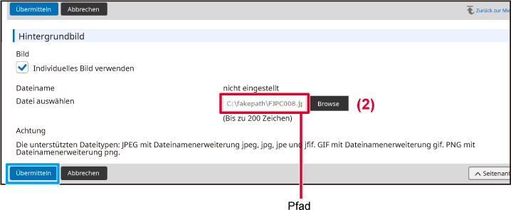 Wählen Sie "Individuelles Bild verwenden" und suchen Sie das gewünschte Bild über die Schaltfläche [Browse].