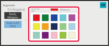 Αφού ολοκληρώσετε τις ρυθμίσεις, πατήστε το πλήκτρο [OK]. Ελέγξτε αν έχει επιλεγεί η καθορισμένη έγχρωμη λειτουργία.
