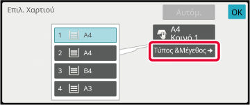 Πατήστε το πλήκτρο [Τύπος χαρτιού], πατήστε το πλήκτρο του καθορισμένου χαρτιού και ύστερα πατήστε το πλήκτρο [OK].