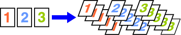 Σελιδοποιεί το σαρωμένο πρωτότυπο ανά σετ και εκτυπώνει τα σετ. Παράδειγμα: Εφόσον έχετε καθορίσει το 5 ως αριθμό αντιγράφων στην ταξινόμηση ![]() |