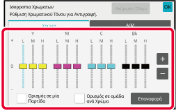 έγχρωμων αντιγράφων ή την καρτέλα [Α/Μ] για τις ρυθμίσεις ασπρόμαυρων